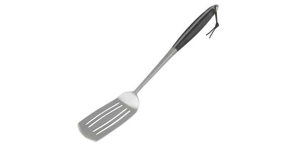 Hochwertiger Grillwender mit Griff aus Edelstahl und ABS sowie Lederschlaufe zum Aufhängen. Ergonomischer Griff.